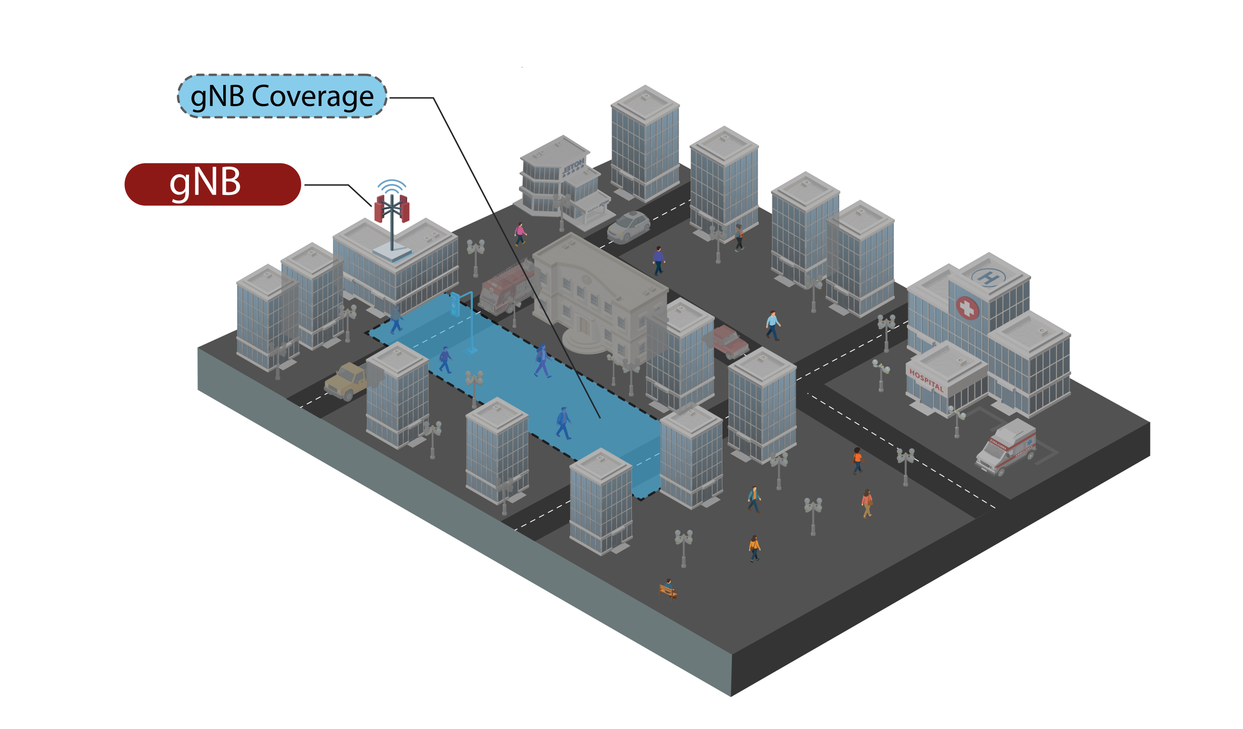 Extends mmWave across courtyards and entry points through coordinated multi-hop routing — eliminating the CAPEX of additional base stations.